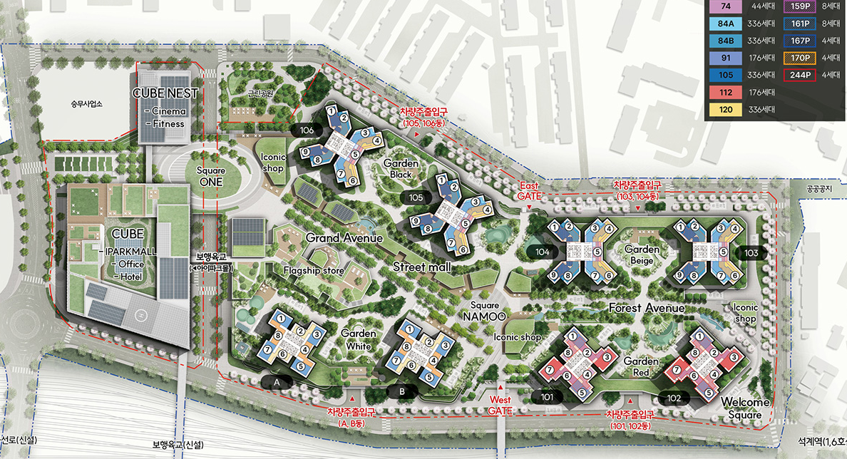 서울원 아이파크는 지하 3층부터 지상 최고 35층, 총 2,877세대로 구성된 대단지 아파트로 계획되어 있습니다. 아파트뿐만 아니라 상가, 편의시설 등 근린생활시설이 함께 조성되어 생활의 편리성을 극대화할 것으로 기대됩니다.