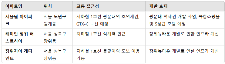 결론적으로 서울원 아이파크는 우수한 입지와 풍부한 생활 인프라, 신뢰성 높은 브랜드를 갖춘 단지로, 앞으로 서울 북부 지역의 랜드마크 아파트로 자리매김할 가능성이 큽니다. 실거주나 투자를 고민하고 있다면 지금부터 서울원 아이파크의 분양권과 입주권을 관심 있게 살펴보는 것이 좋겠습니다.